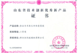 食品專用玻璃紙——榮獲“山東省技術(shù)創(chuàng)新優(yōu)秀新產(chǎn)品二等獎”