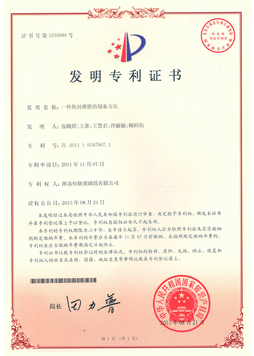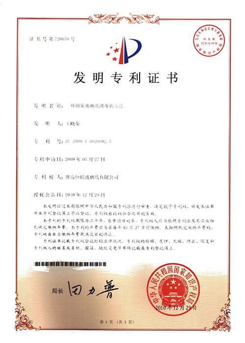 新型溶劑型涂布玻璃紙——被列入“2008年山東省重點(diǎn)技術(shù)創(chuàng)新項(xiàng)目計(jì)劃”(魯經(jīng)貿(mào)技字[2008]157號(hào)),已通過山東省級(jí)科技成果鑒定。