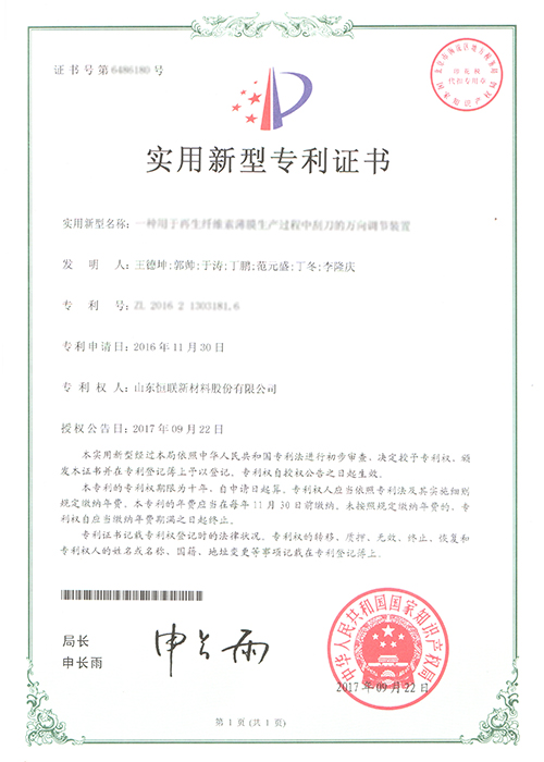 直線打孔再生纖維素膜——被列入“2012年山東省第一批技術(shù)創(chuàng)新項(xiàng)目計(jì)劃”(魯經(jīng)信技字[2012]109號(hào)),已通過山東省級(jí)科技成果鑒定。